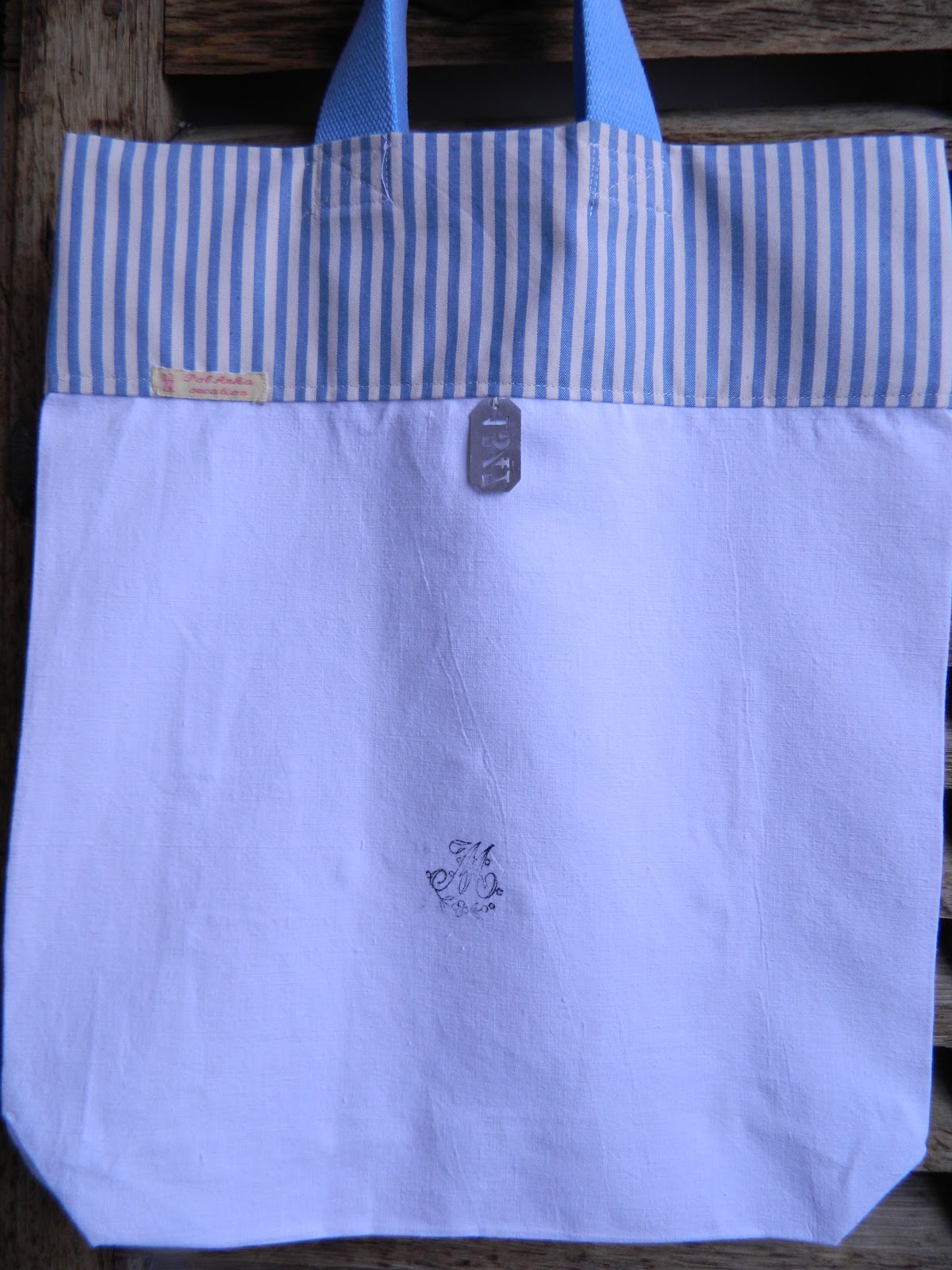 A part ça , j'ai crée mes sacs , très peso (un exemplaire) pour vos courses , la plage ou visite chez la copine(pour la rendre jalouse).Les sacs sont faits avec un tissus très ancien (vieux draps) LE CHANVRE.Trés solide et si jolie et diffèrent.